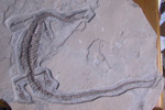 REP A: Mesosaurus braziliensis. Irati formation, Early Permian, Brazil; the creature that helped prove continental drift. Excellent specimen of this rare species, from a private British collection. Creature measures 20 1/2" (52cm) in a block measuring 17 3/4" (46cm). |